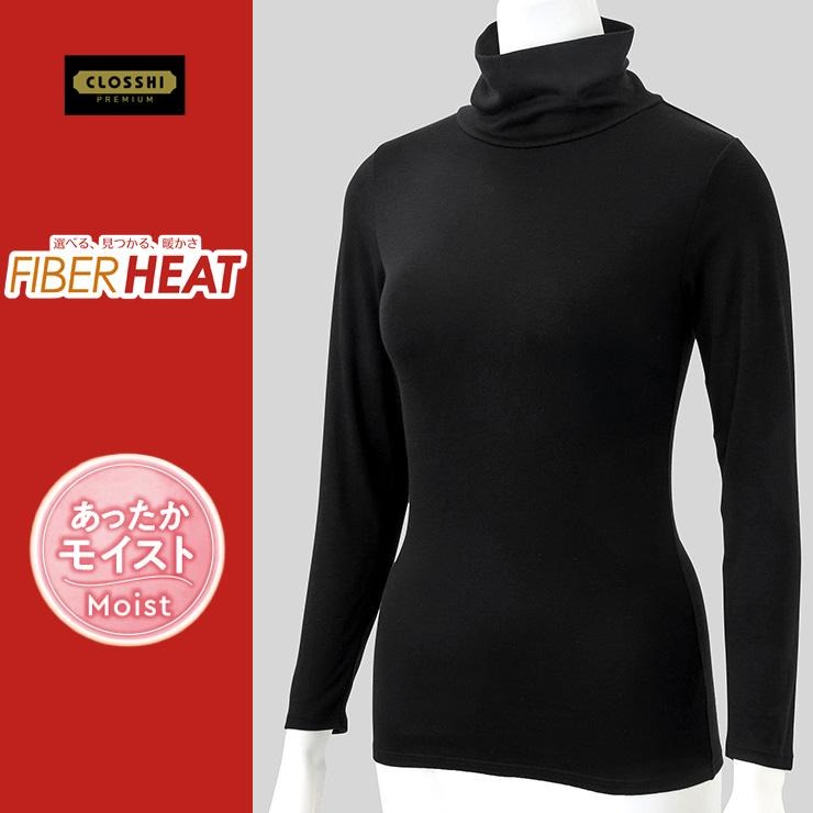 レディース タートルネック8分袖(3L~5L・FIBER HEATプレミアム あったかモイスト)