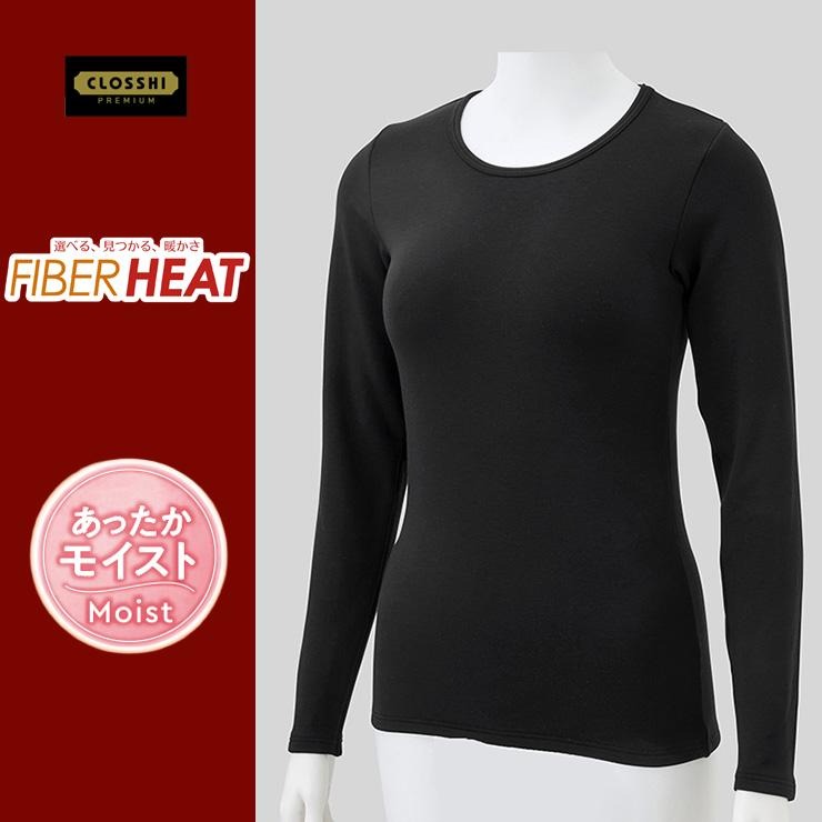 レディース クルーネック長袖(FIBER HEAT スーパープレミアム あったかモイスト)