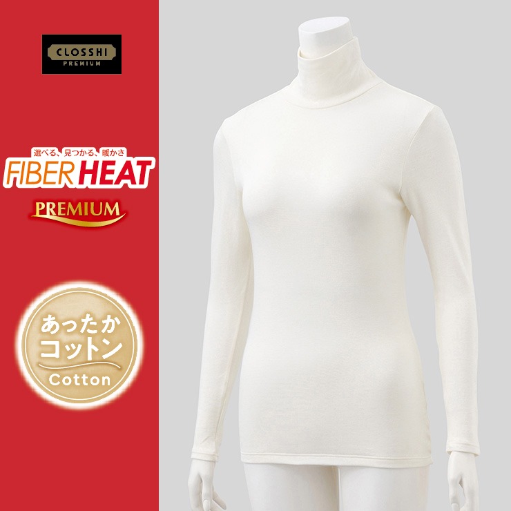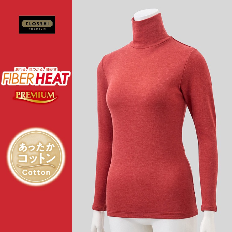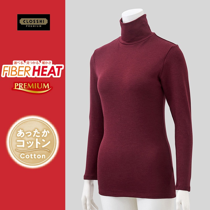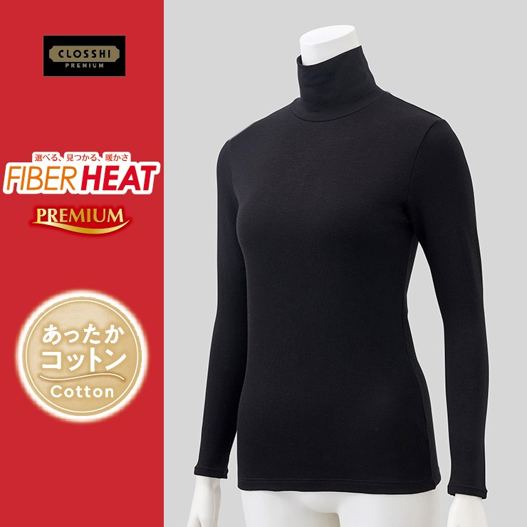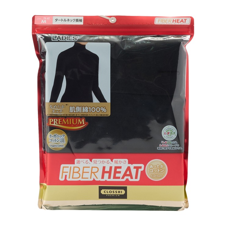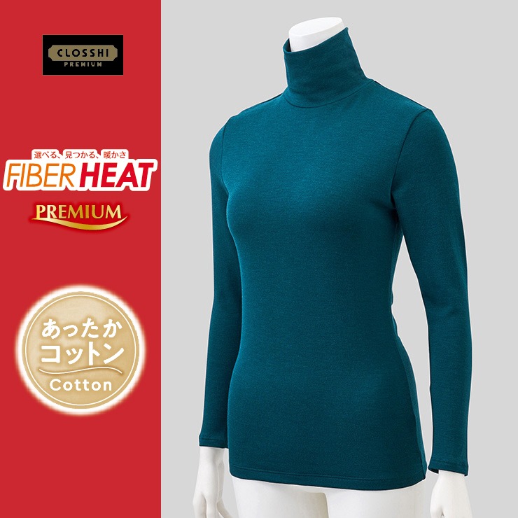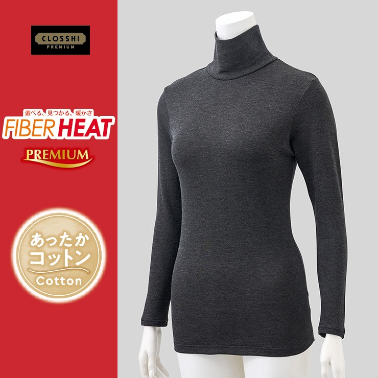 レディース タートルネック長袖(FIBER HEAT あったかコットン)