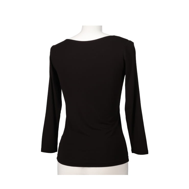 広めに開いたラウンドネックはいろんなアウターにフィット、8分袖で手元すっきり!