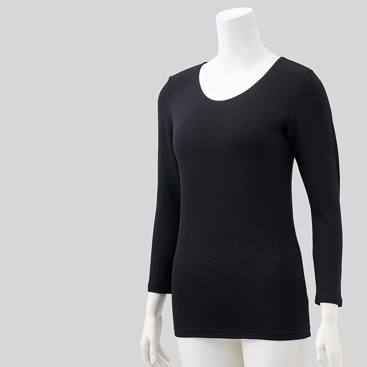 レディース ラウンドネック8分袖(7L~8L・FIBER HEAT あったかコットン)
