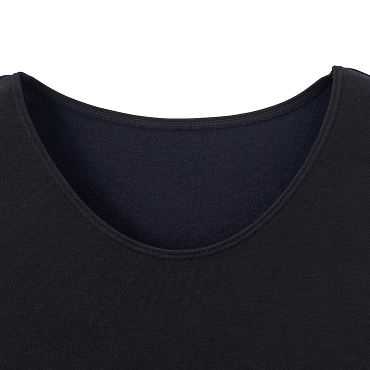 冬の定番といえばコレ!広めに開いた襟はいろんなアウターにフィット。チラ見えせずに袖口まであたたかい8分袖は