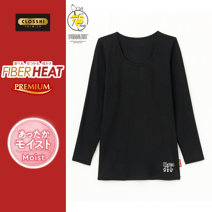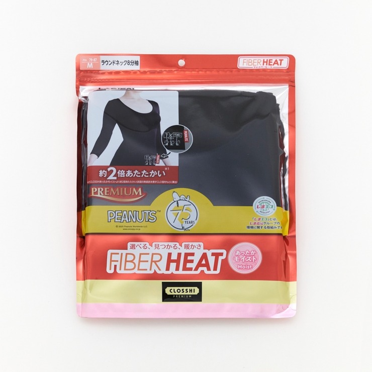レディース ラウンドネック8分袖(FIBER HEAT プレミアム・PEANUTS)