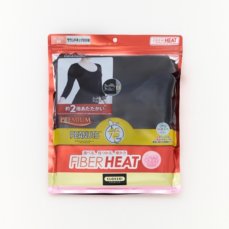 レディース ラウンドネック8分袖(FIBER HEAT プレミアム・PEANUTS)