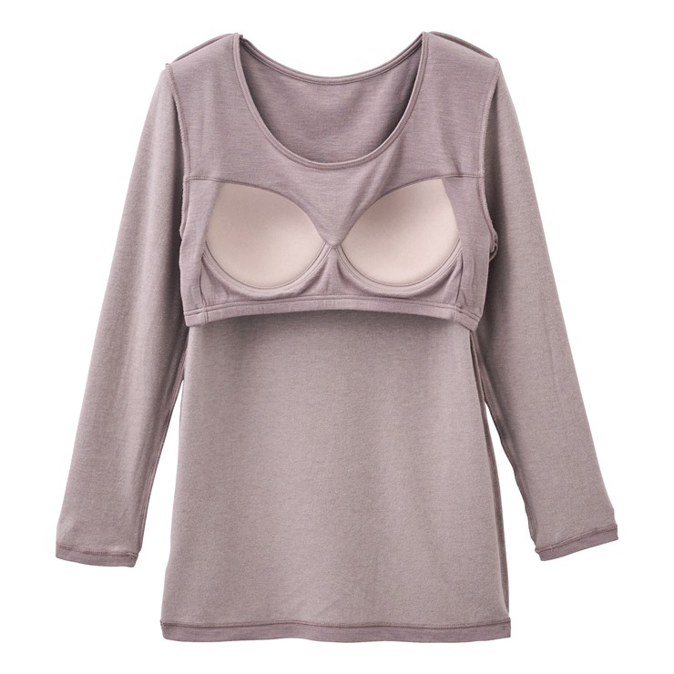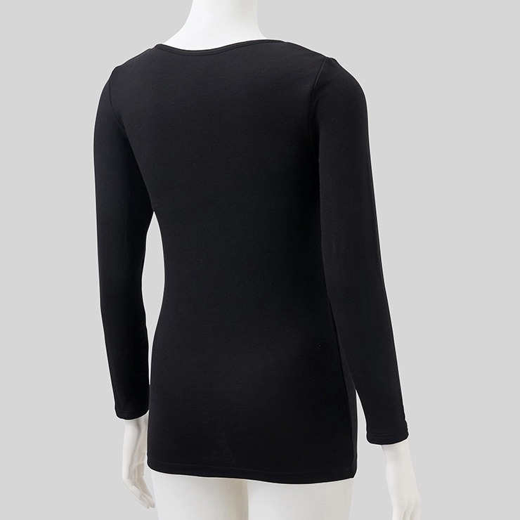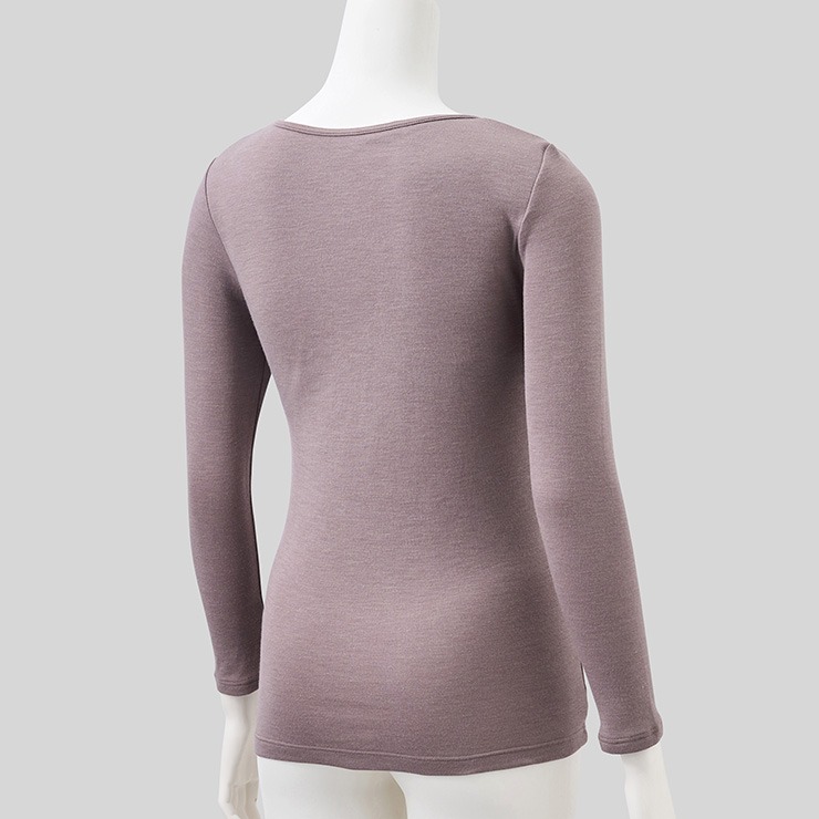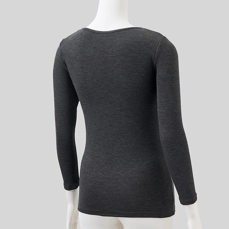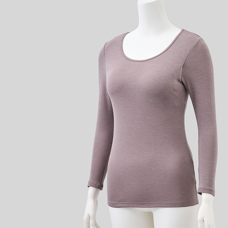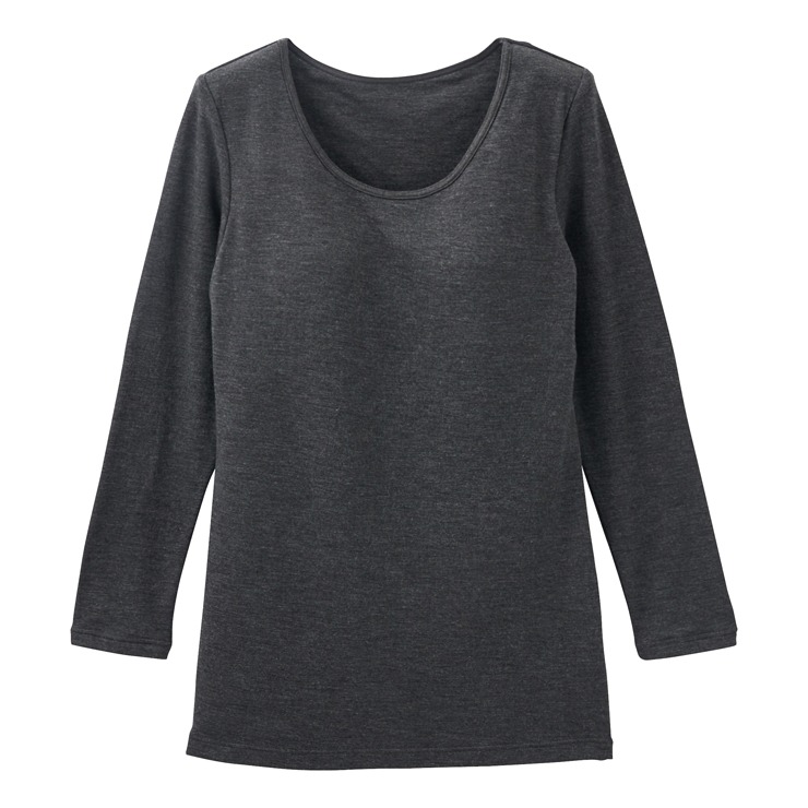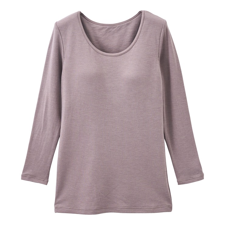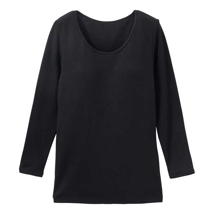 レディース カップ付きラウンドネック8分袖 しっかり(FIBER HEAT あったかコットン)