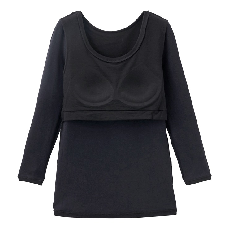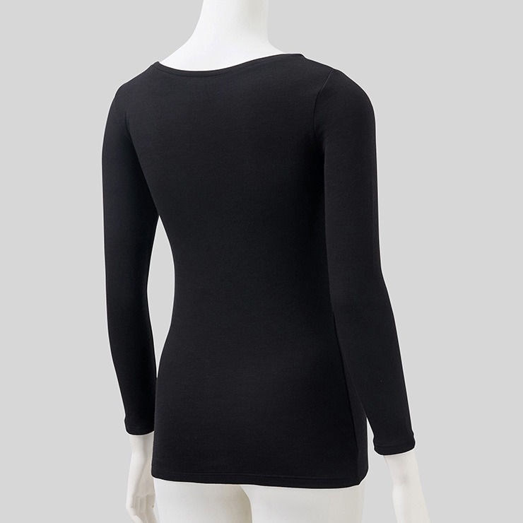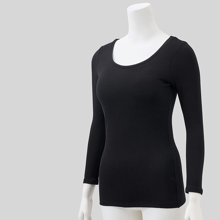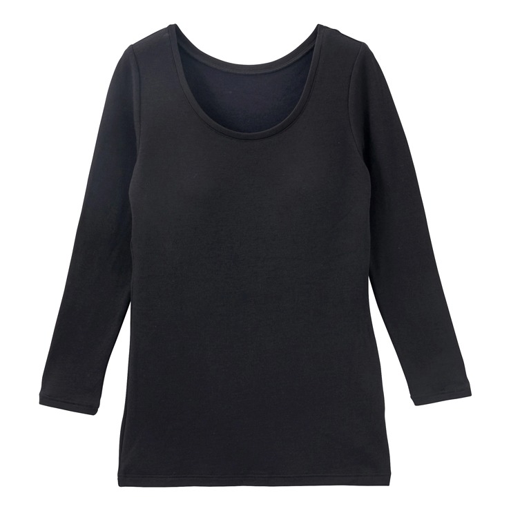 レディース カップ付きラウンドネック8分袖 らくちん(FIBER HEAT あったかコットン)