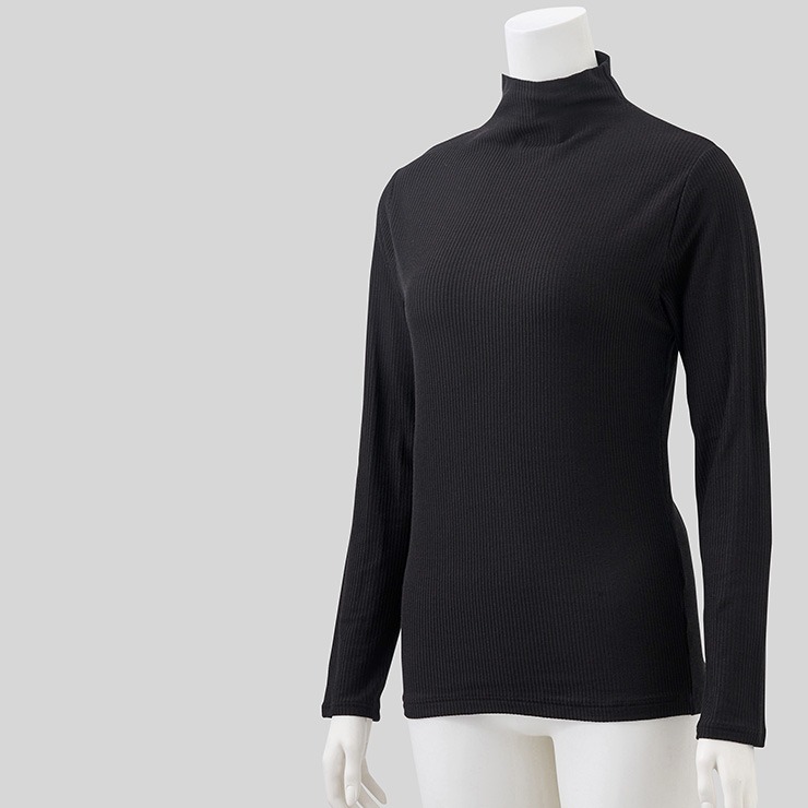 レディース ボトルネック長袖リブ(FIBER HEAT あったかコットン)