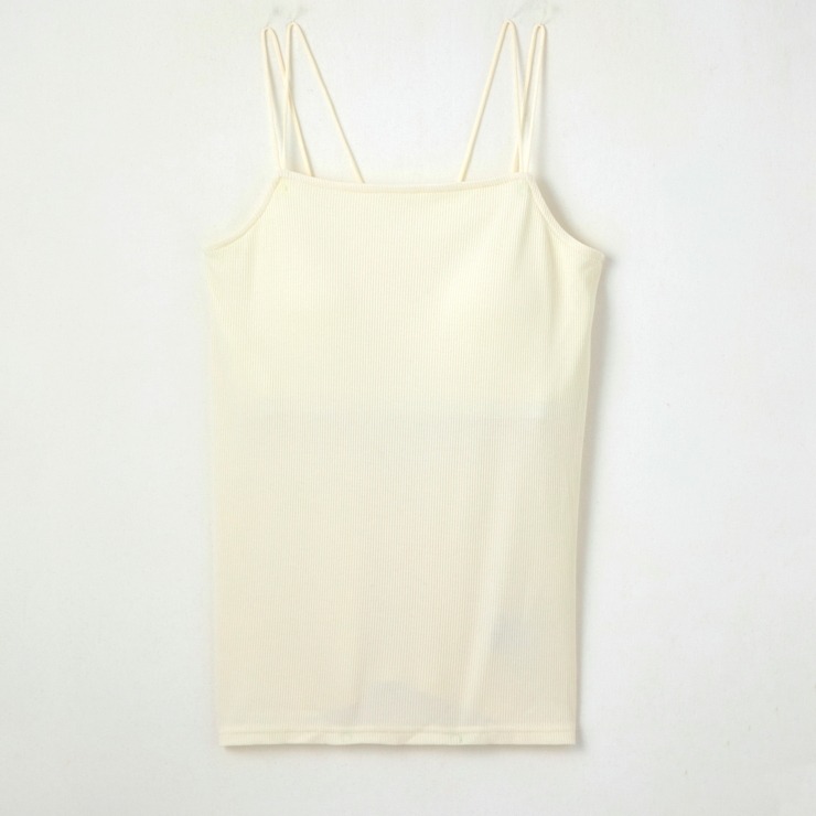 ②カップ付きキャミソール…着回しができるカップ付きキャミソールが登場!しっかりフィットして安定感のあるモールドカップです♪生地は伸びが良いレーヨン素材を使用しているので、滑らかで優しい肌触りが癖になります。