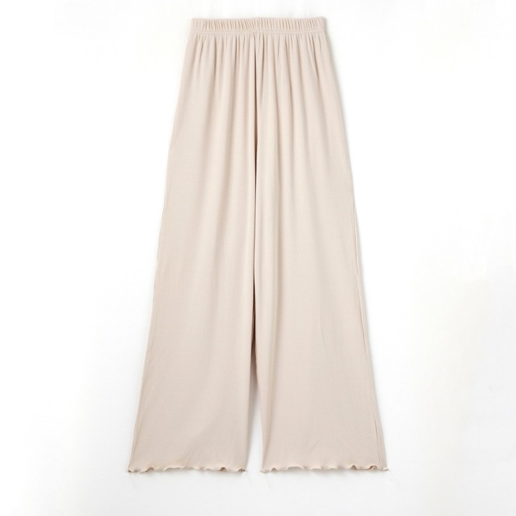 ④ワイドレギンス…ゆとりのあるシルエットが魅力のワイドレギンス。脚のラインを隠せる優れもの!ウエストは総ゴム仕様で、ストレスフリーな履き心地。