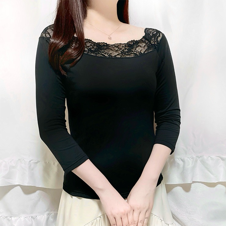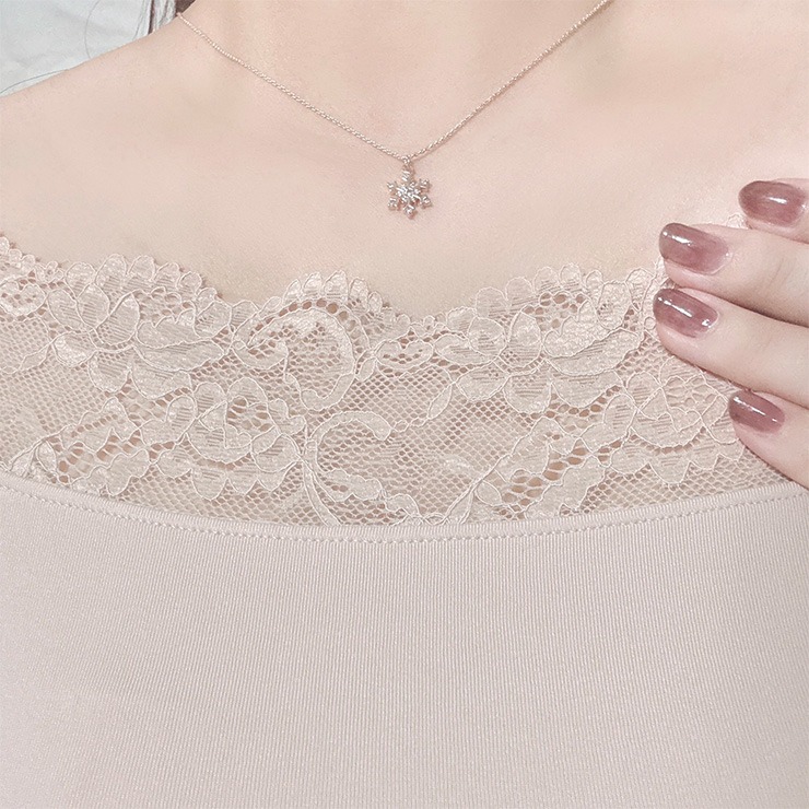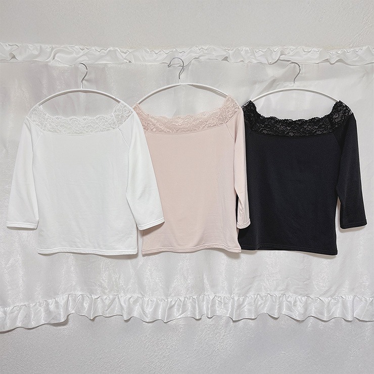 首元のスカラップレースがチラ見えしても可愛いオフショルダーインナーです♪