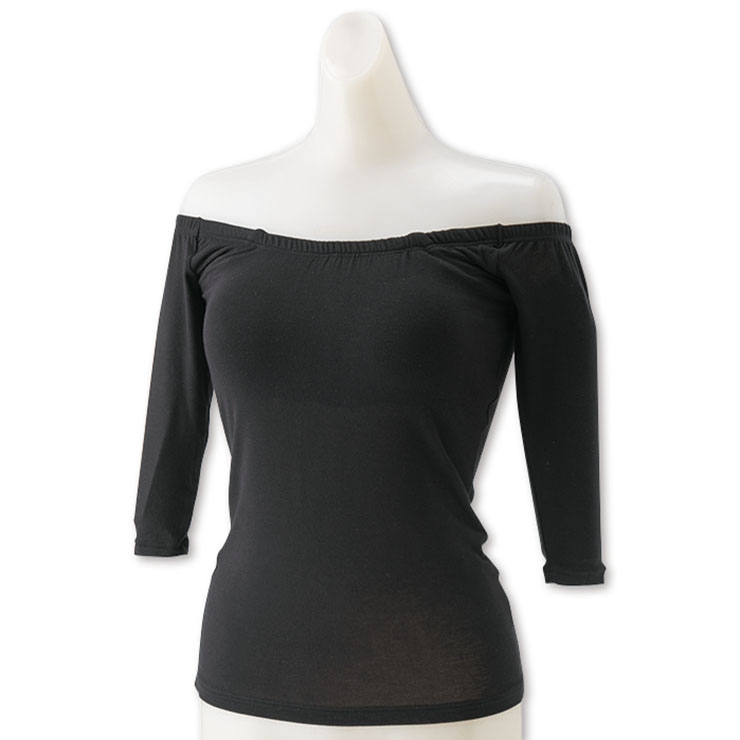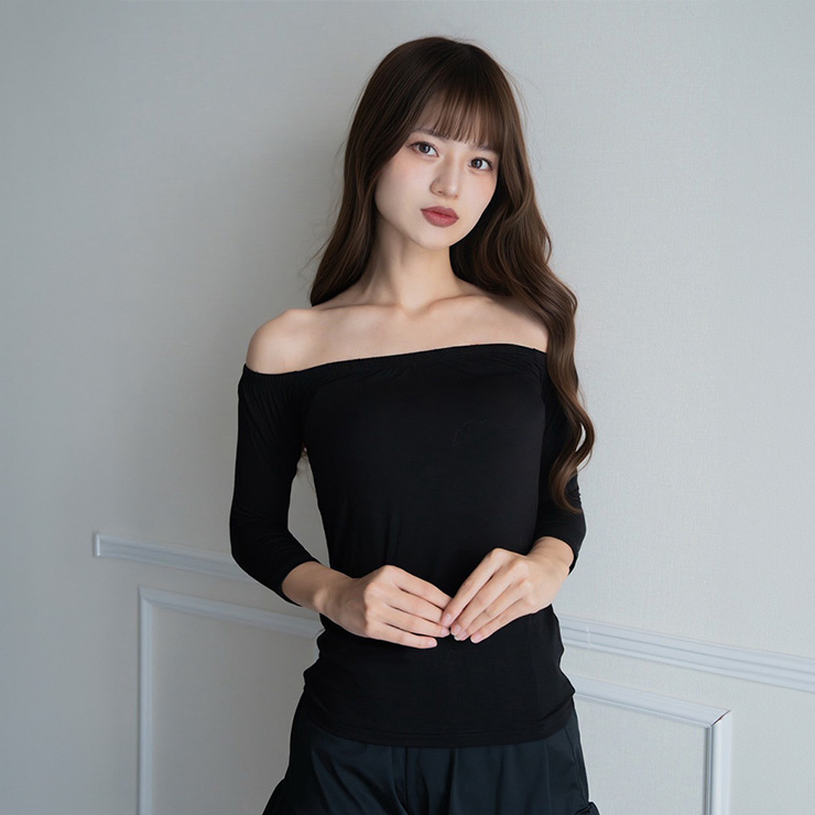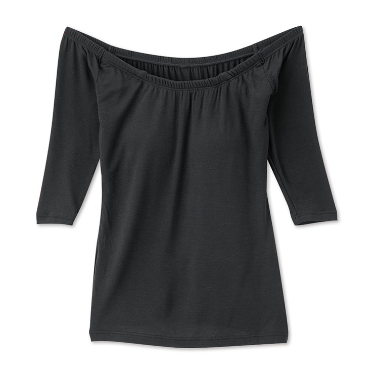レディース カップ付きオフショルダーネック8分袖インナー(眞白ありす・FIBER HEAT)