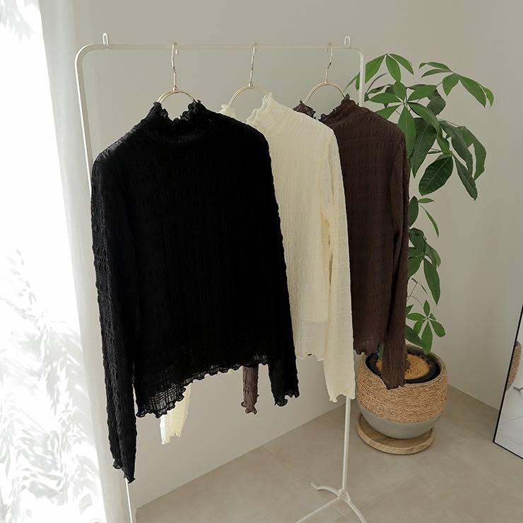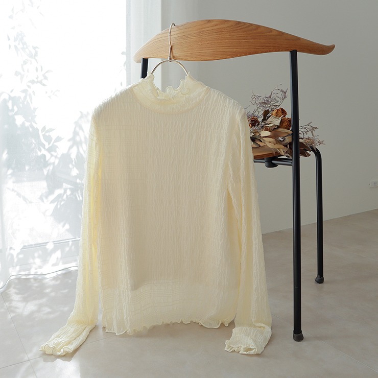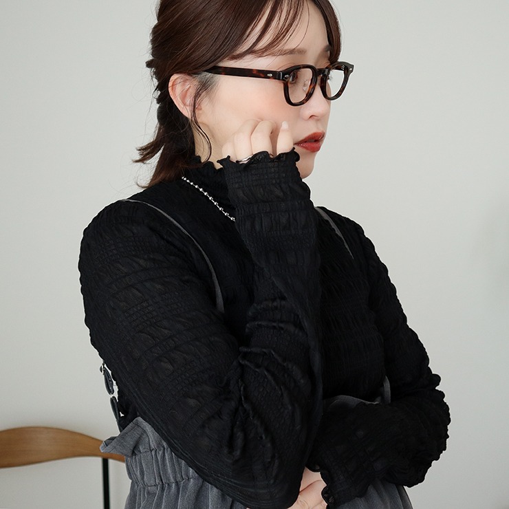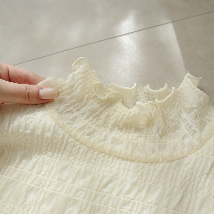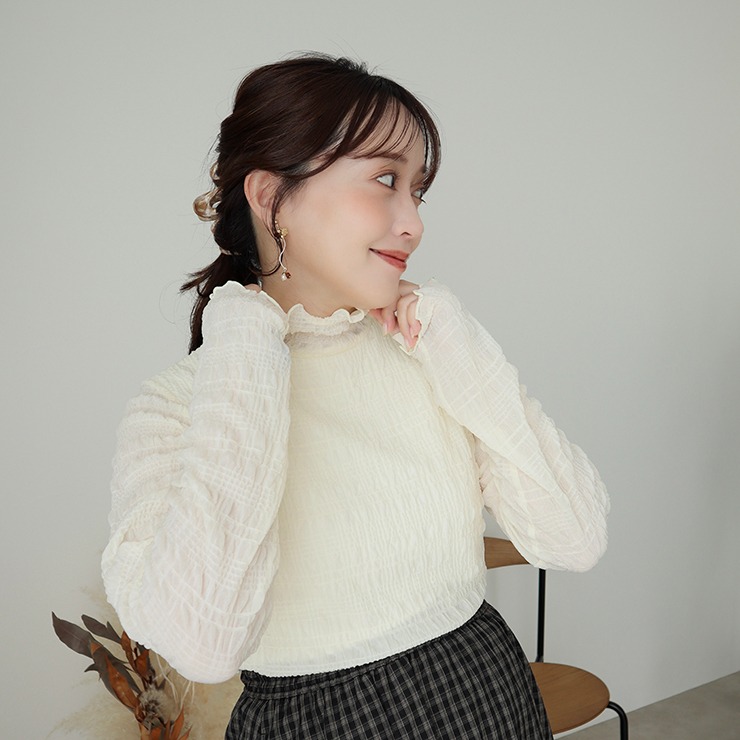 ネック部分と袖はさりげない透け感で女性らしさが高まるシアーインナー。