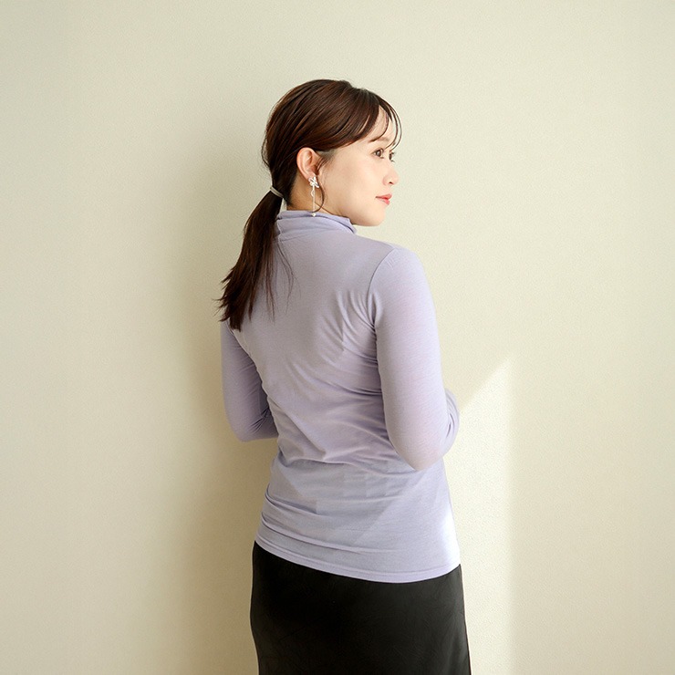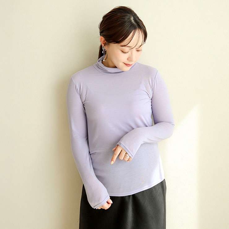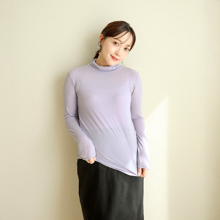 レディース タートルネック長袖 無地(terawear emu×FIBER HEAT) ラベンダー 309 ラベンダー 309