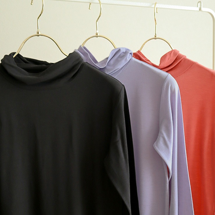 レディース タートルネック長袖 無地(terawear emu×FIBER HEAT)