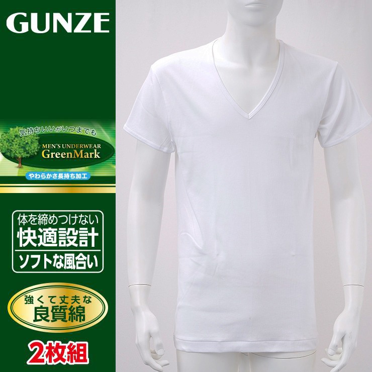 メンズ 2枚組半袖V首インナー(GreenMark)