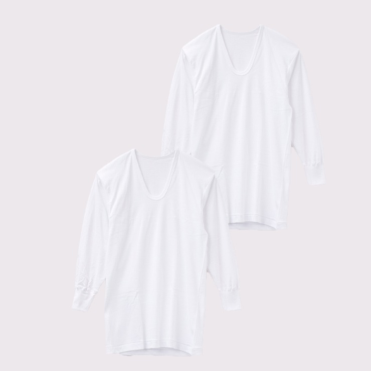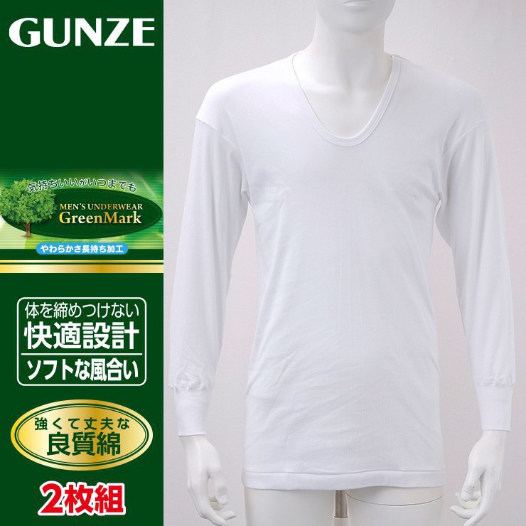 メンズ 2枚組長袖U首インナー(GreenMark)