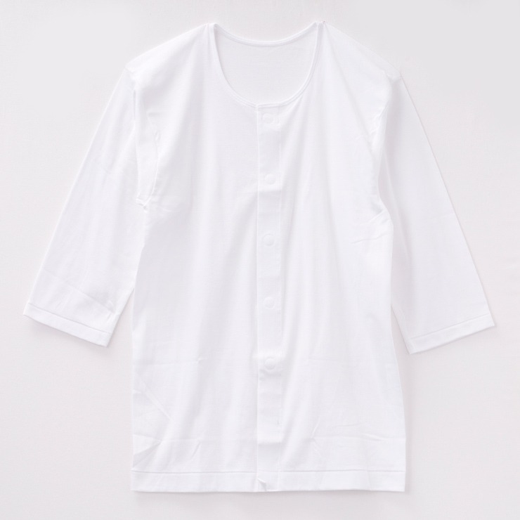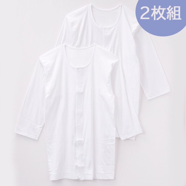 しまサポ直トク便|メンズ 2枚組前開き7分袖インナー(らくらく肌着)