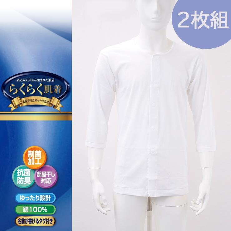 メンズ 2枚組前開き7分袖インナー(らくらく肌着)