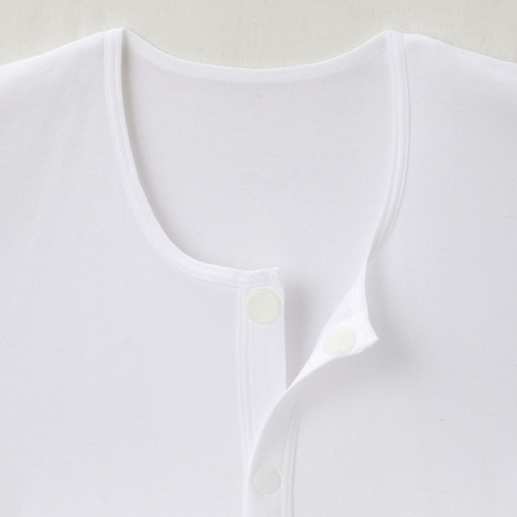 ワンタッチテープ(マジックテープ)を使用した前開き半袖シャツです。