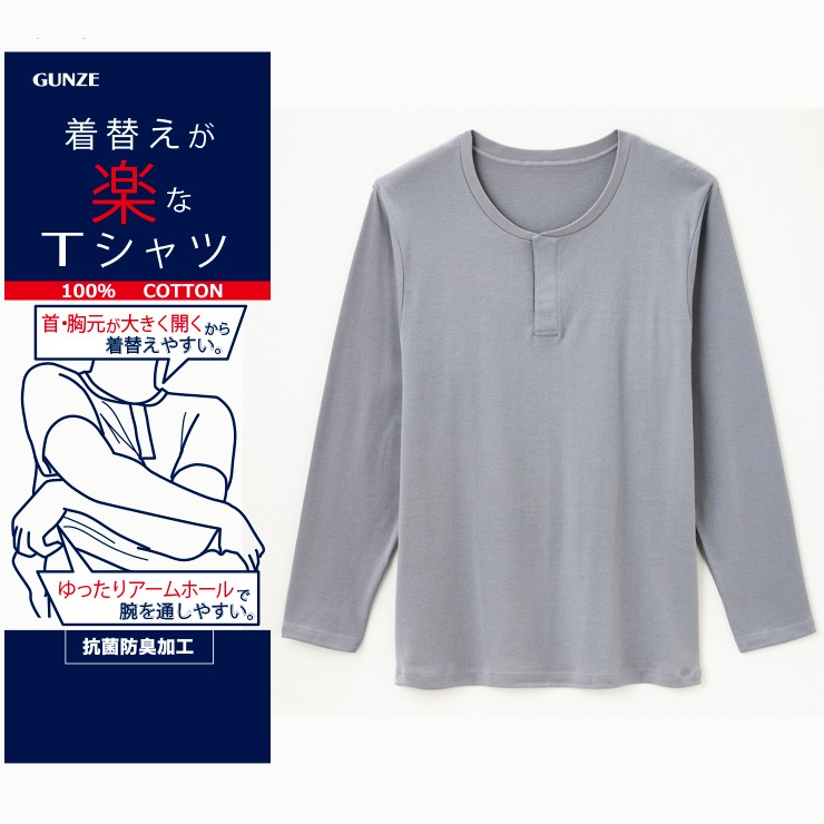 メンズ 長袖ワンタッチシャツ(着替えが楽)