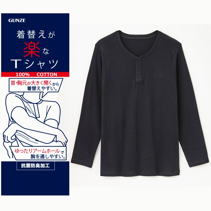 腕を高く上げる事なく着替えられるTシャツ。
