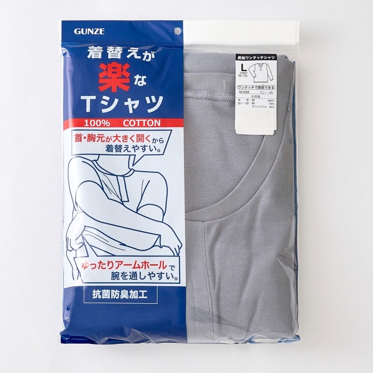 メンズ 長袖ワンタッチシャツ(着替えが楽)