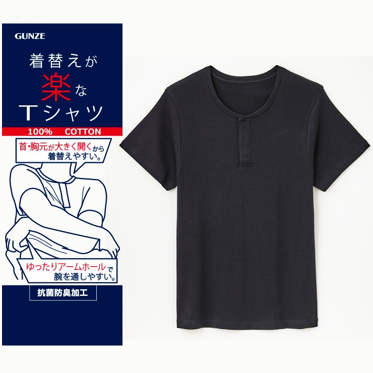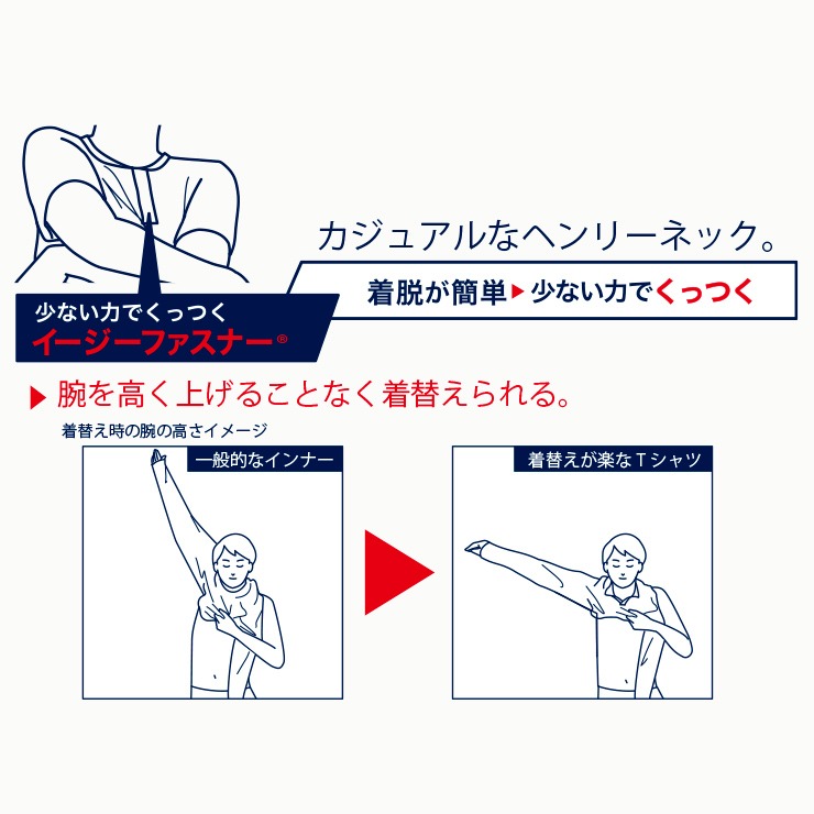 腕を高く上げる事なく着替えられるTシャツ。
