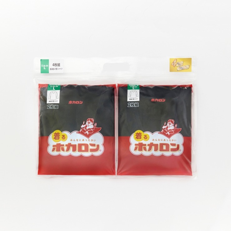 メンズ 4枚組 長袖Vネックインナー(ホカロン)