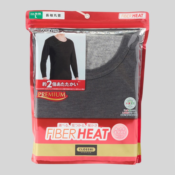 メンズ 長袖丸首インナー(FIBER HEATプレミアム)