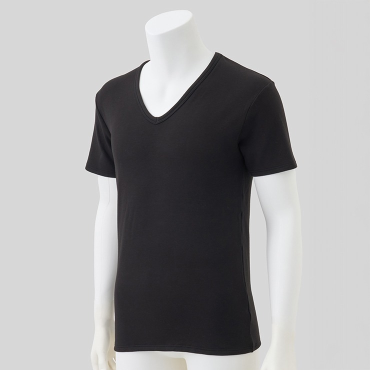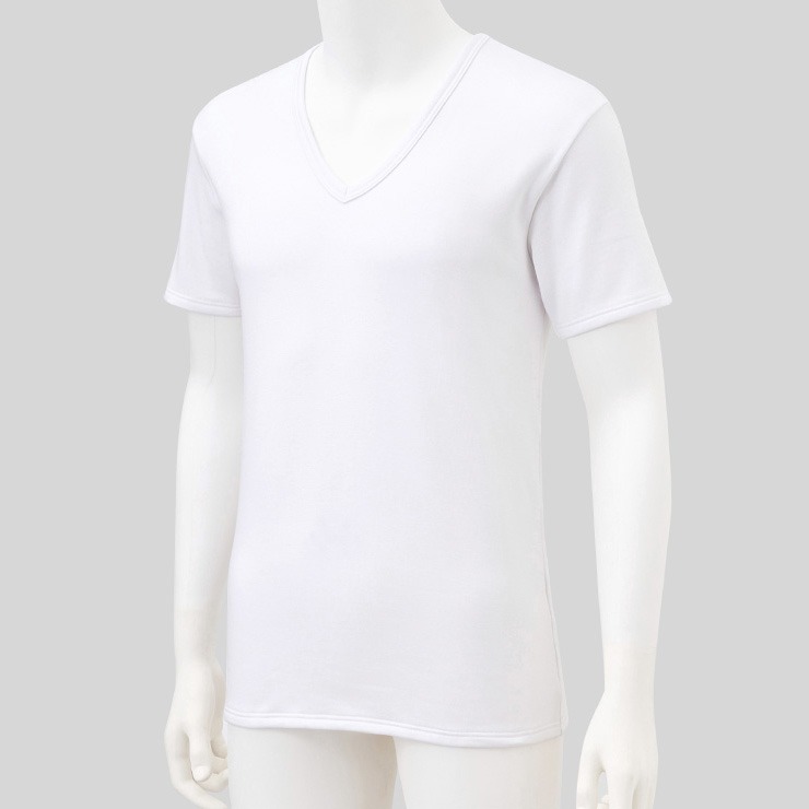 メンズ 半袖V首インナー(FIBER HEAT SUPER PREMIUM あったかモイスト)