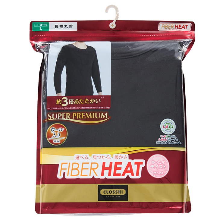 メンズ 長袖丸首インナー(FIBER HEAT SUPER PREMIUM あったかモイスト)