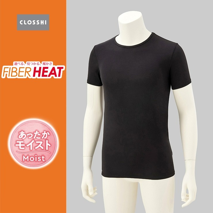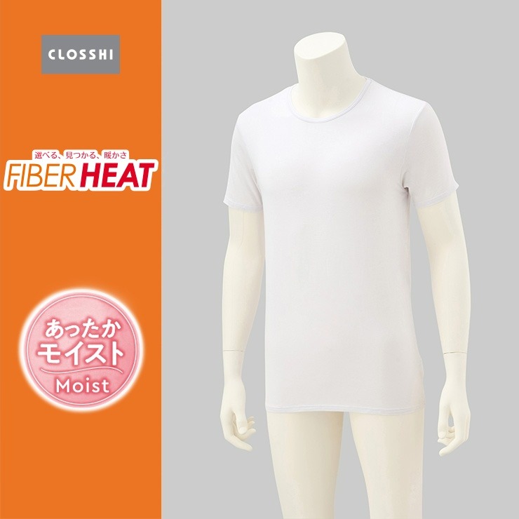 メンズ 半袖丸首インナー(FIBER HEAT あったかモイスト)