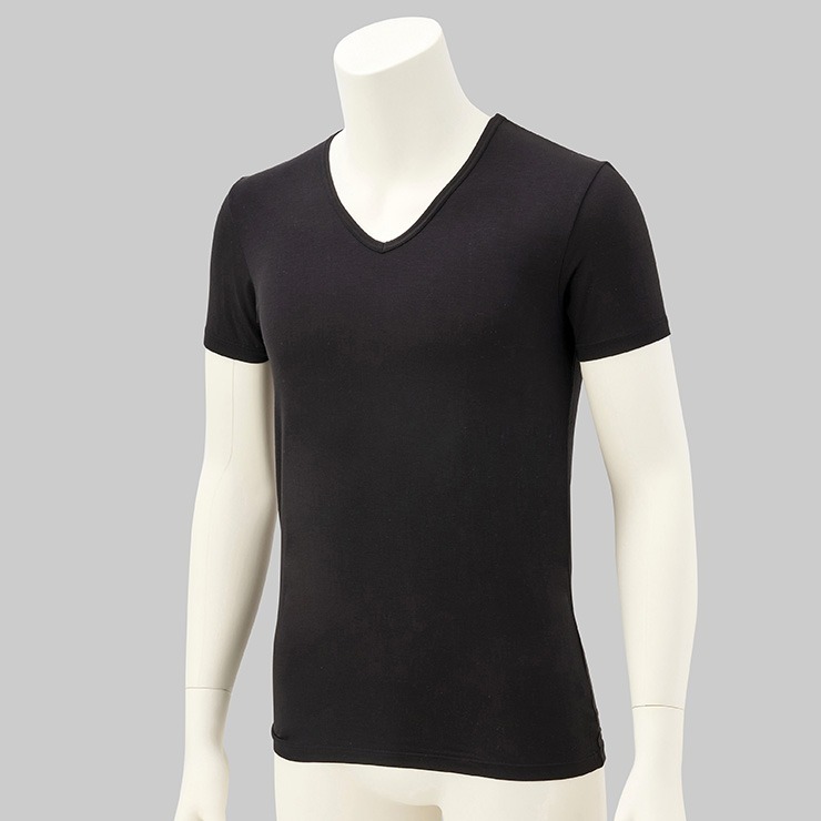 メンズ 半袖V首インナー 3L~6L(FIBER HEAT あったかモイスト) ブラック 213 ブラック 213