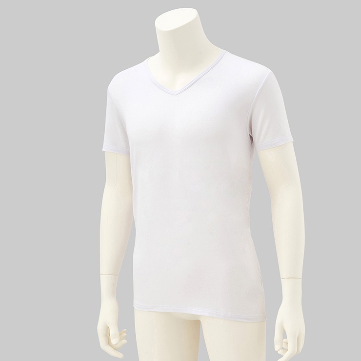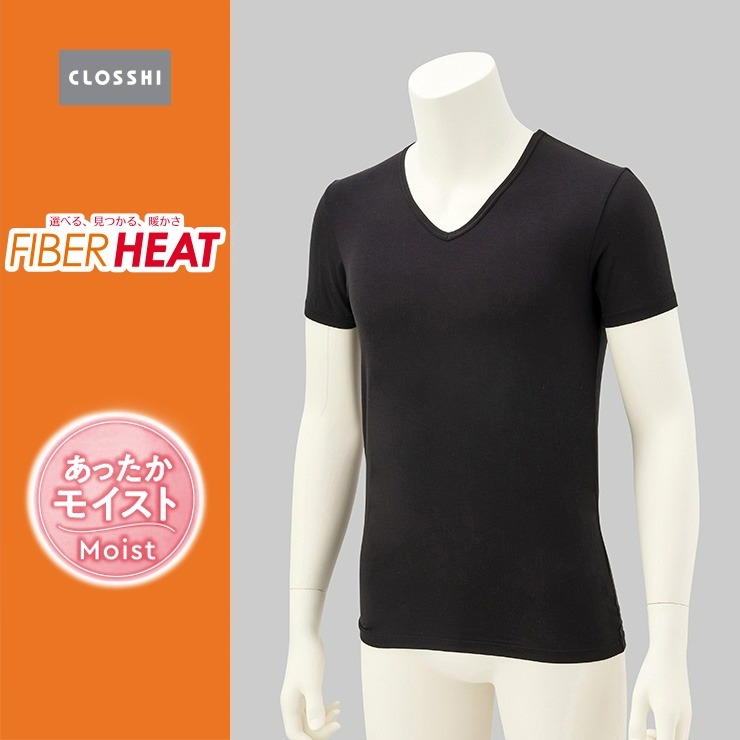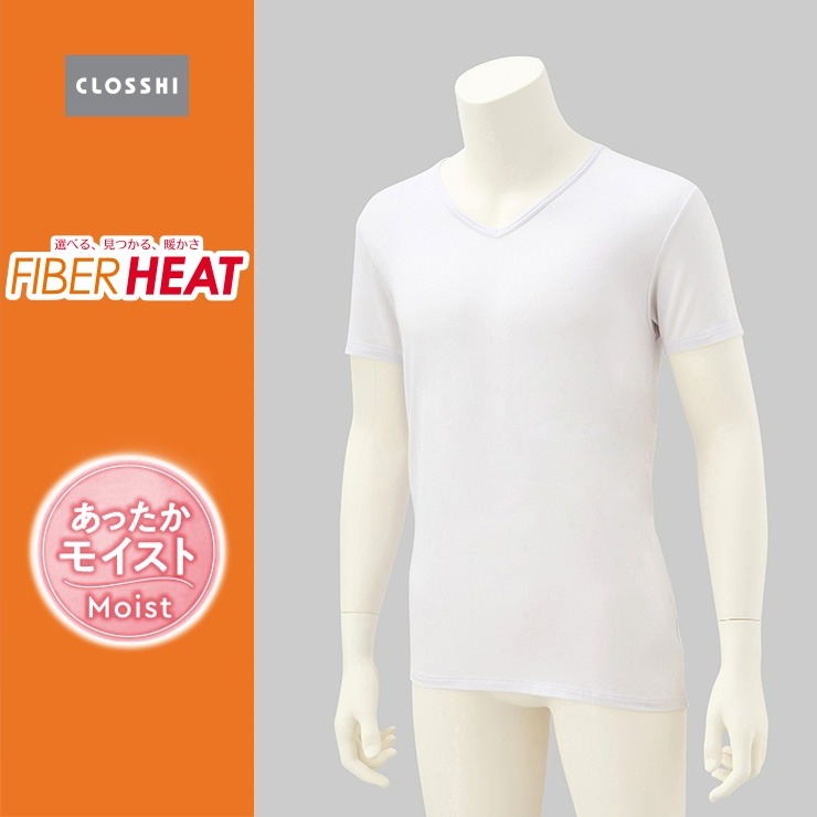 メンズ 半袖V首インナー 3L~6L(FIBER HEAT あったかモイスト)