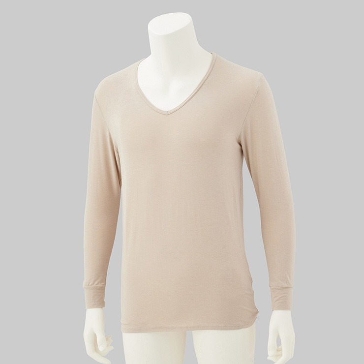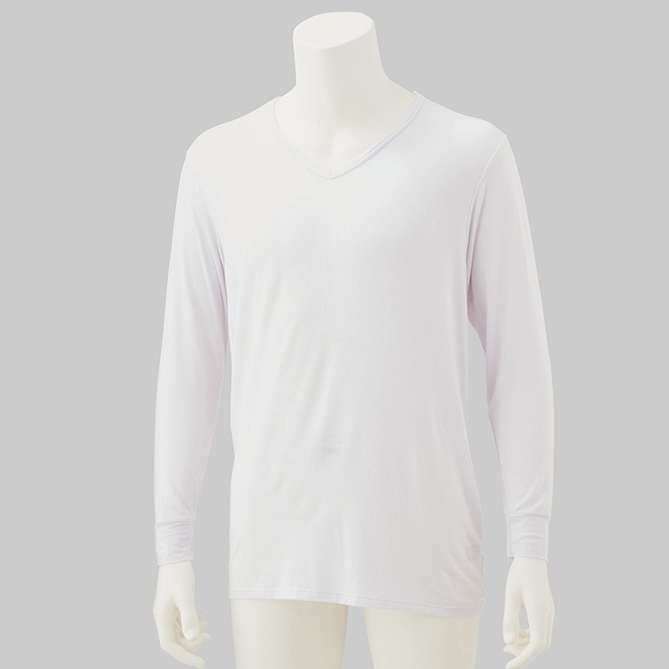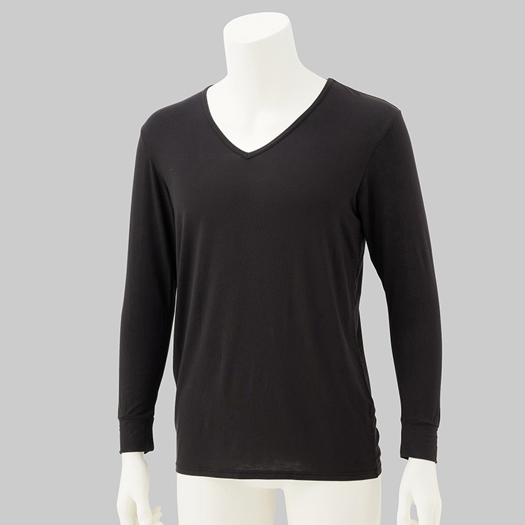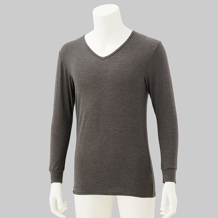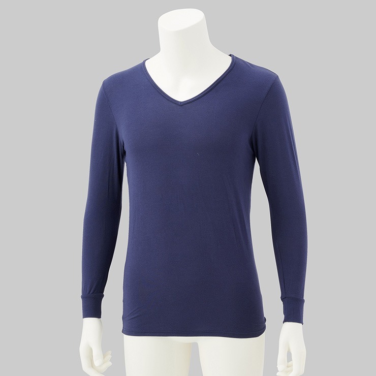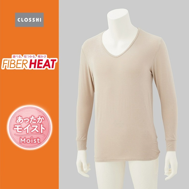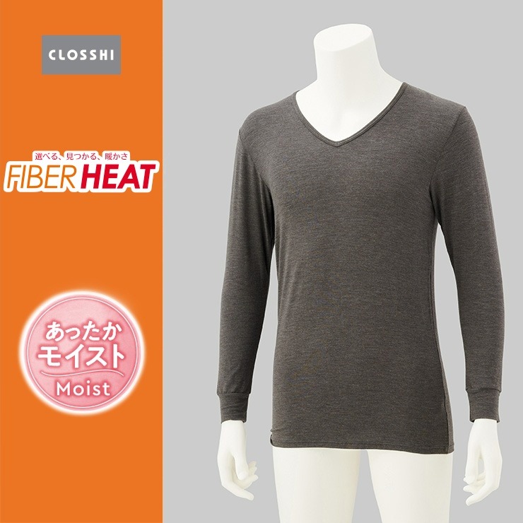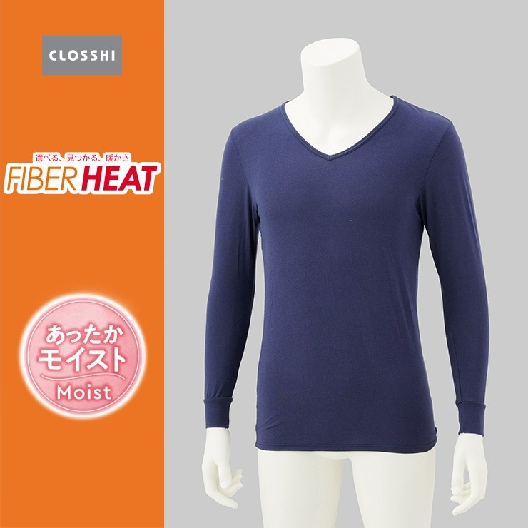 しまサポ直トク便|メンズ 長袖V首インナー(FIBER HEAT あったかモイスト)