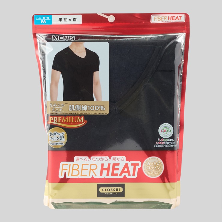 メンズ 半袖V首インナー(FIBER HEATプレミアム あったかコットン)