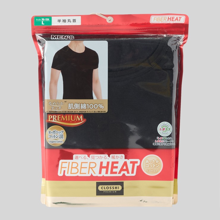 メンズ 半袖丸首インナー(3L~6L・FIBER HEATプレミアム あったかコットン)