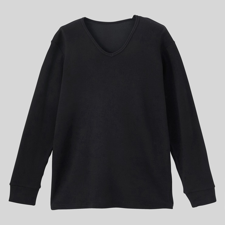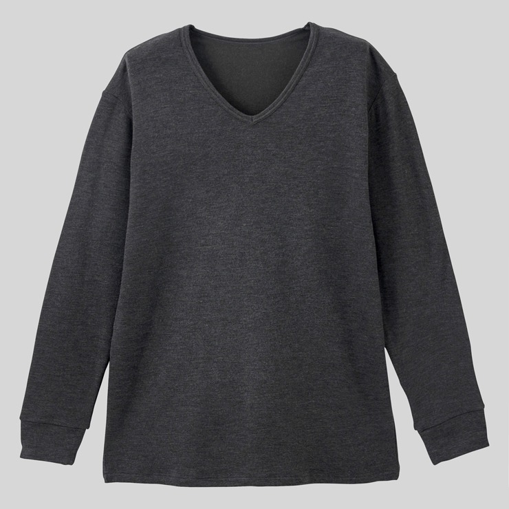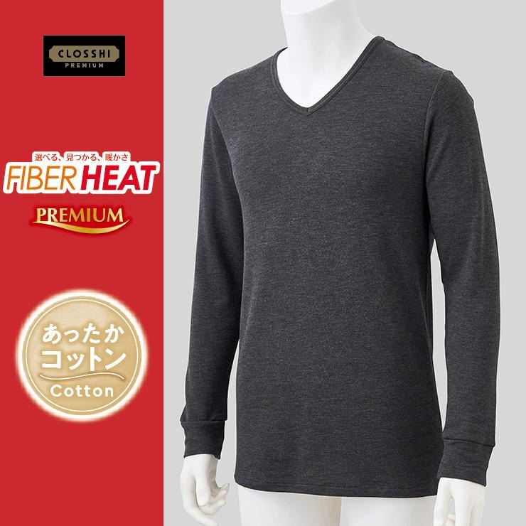 メンズ 長袖V首インナー(3L~5L・FIBER HEATプレミアム あったかコットン)