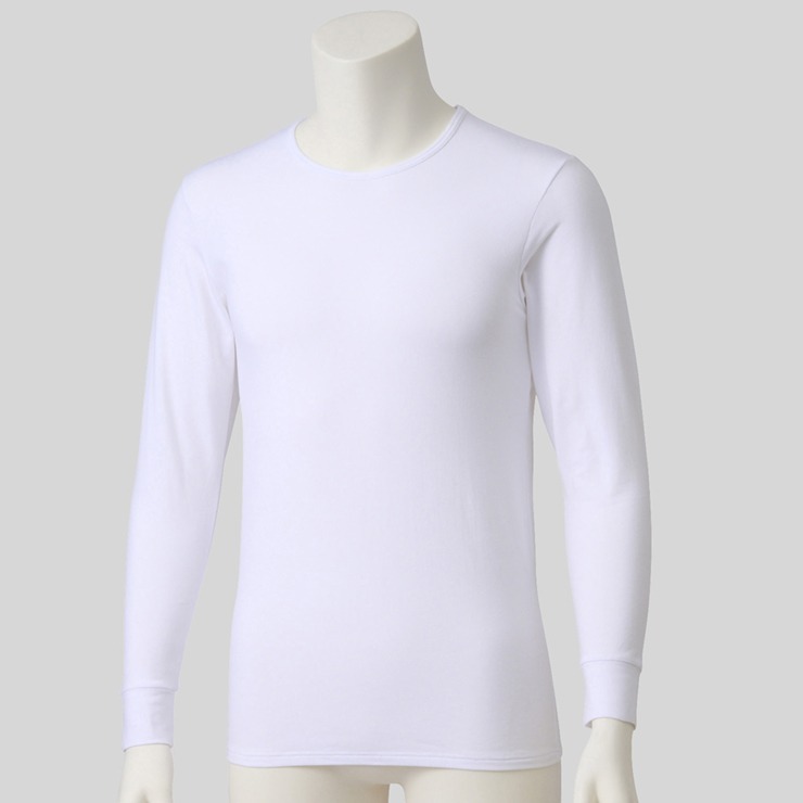 しまサポ直トク便|メンズ 長袖丸首インナー(3L~5L・FIBERHEATコットン)