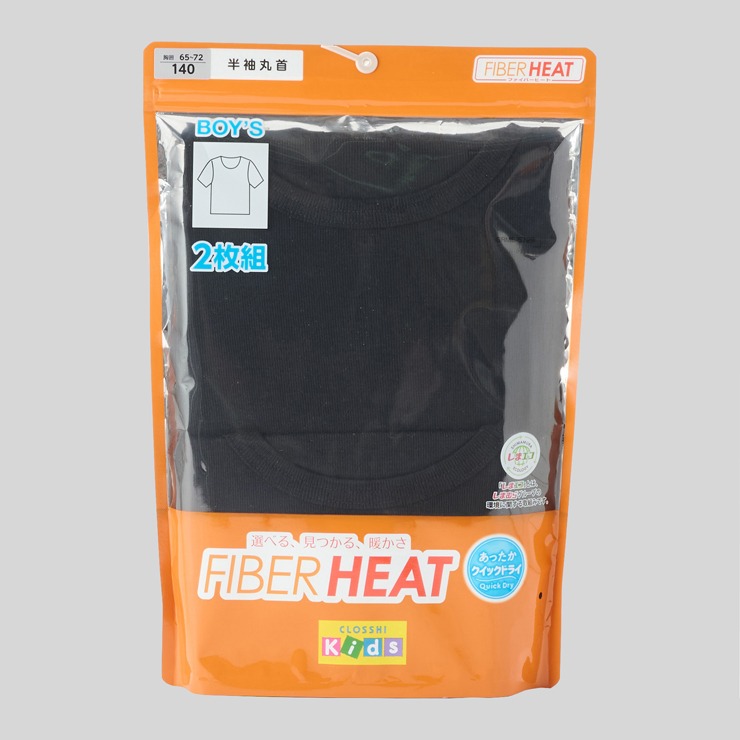 ボーイズ 2枚組半袖インナー(130-160cm・FIBER HEAT)
