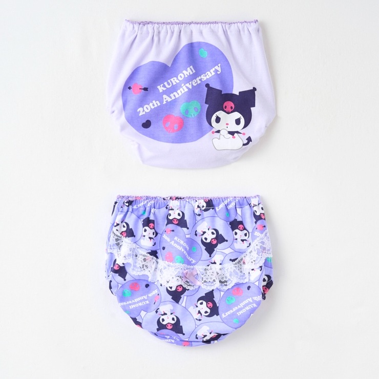 大人気 サンリオキャラクターズより クロミ2枚組ショーツが登場。 クロミ20周年アートのワンポイントプリントしたショーツと総柄ショーツにレースをつけた2枚組ショーツです。
