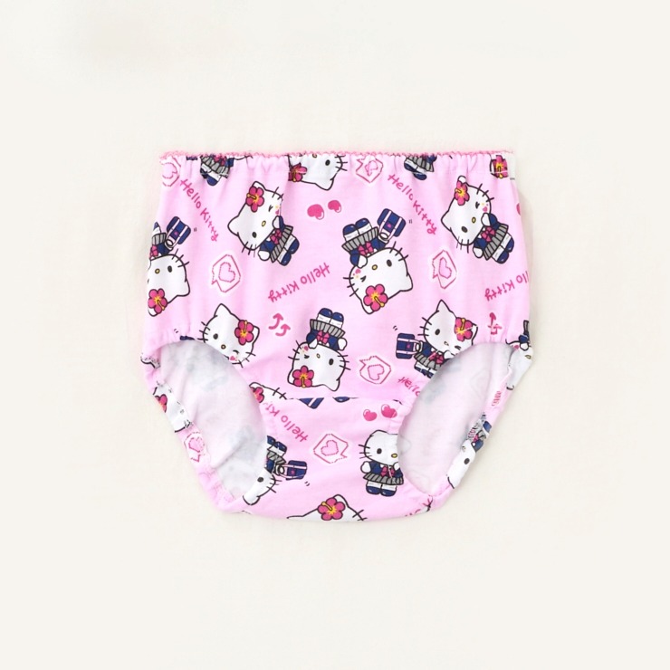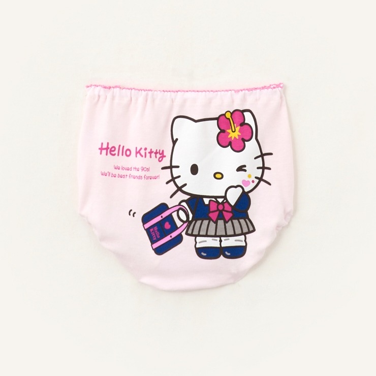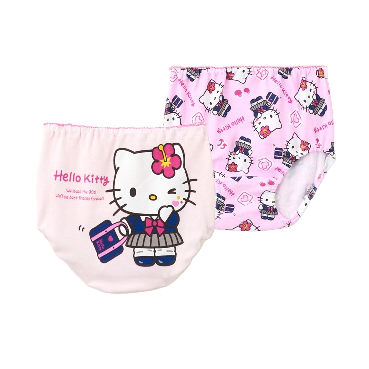 大人気 サンリオキャラクターズより ハローキティ2枚組ショーツが登場。 ギャル風にハローキティが制服を着た絵柄をプリントしたショーツと総柄ショーツの2枚組ショーツです。