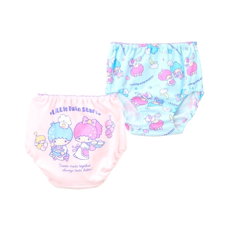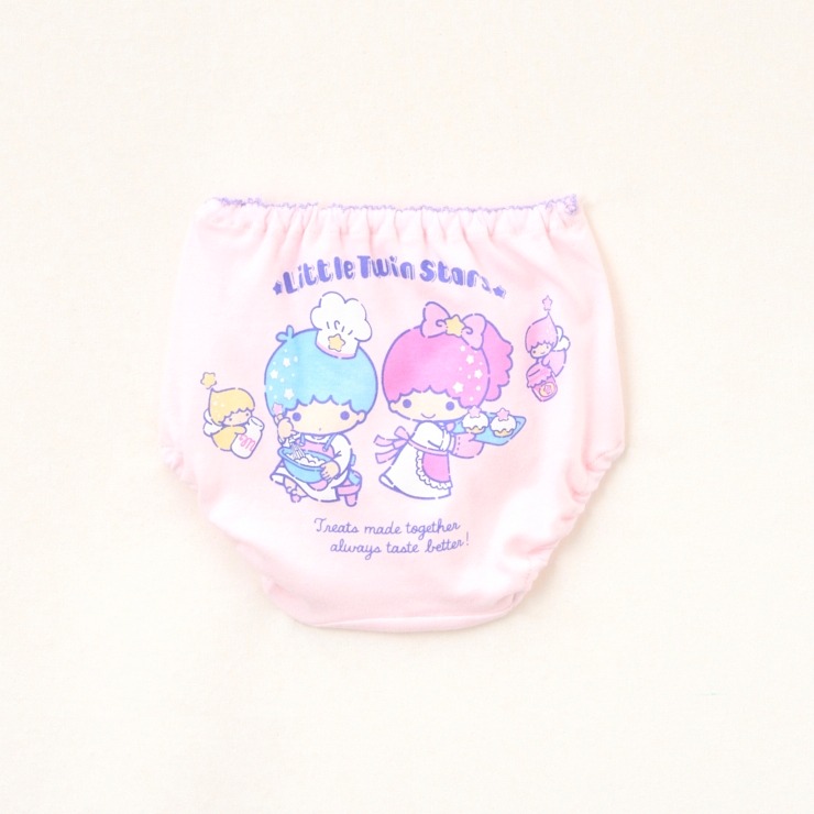 大人気 サンリオキャラクターズより リトルツインスターズ2枚組ショーツの登場。 キキララのクッキングスタイル柄をプリントしたショーツと総柄ショーツの2枚組です。