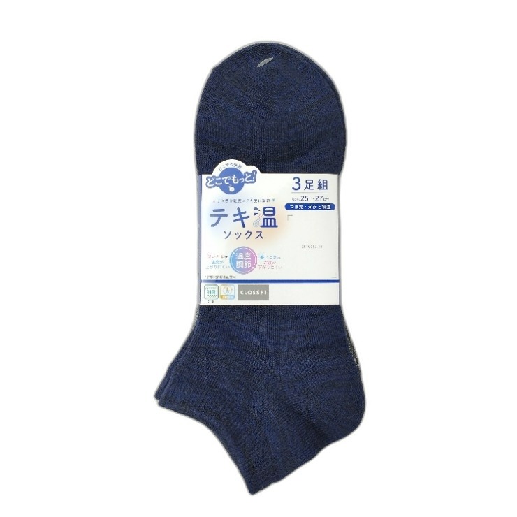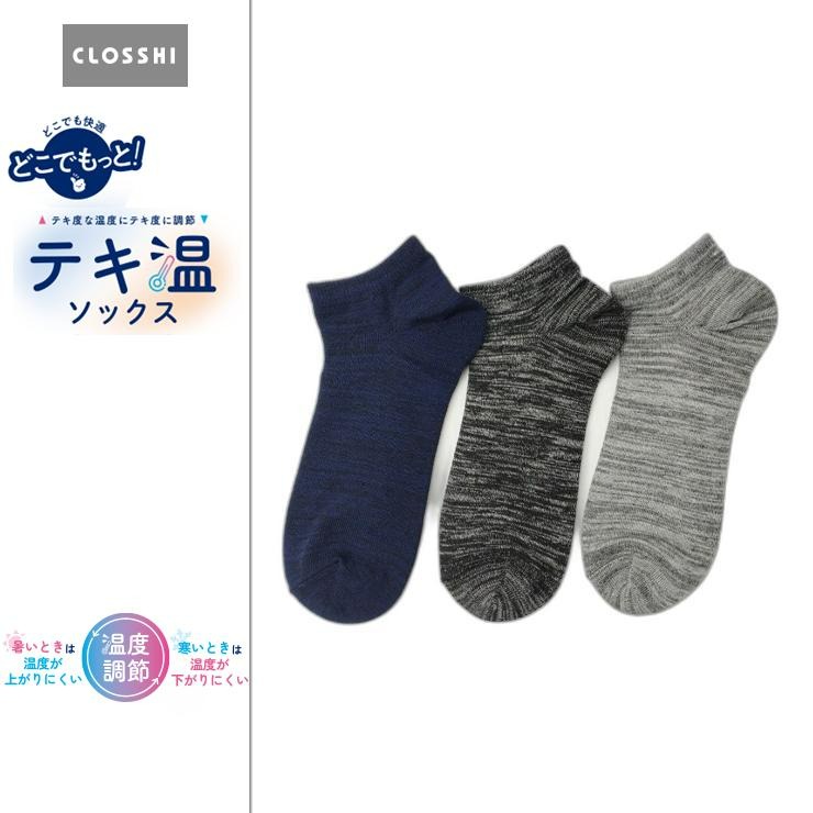 メンズ 3足組スニーカーインソックス(25-27/27-29cm・どこでもっと)