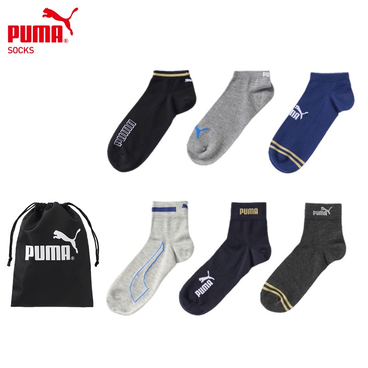 人気ブランドPUMAのスニーカー丈3足、クウォーター丈3足がオリジナル巾着に入ったお買い得商品です。