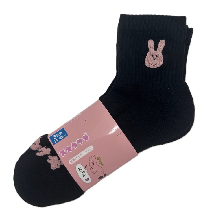 メンズ クォーター丈 底パイル編みソックス刺繍付 24-26cm(スキウサギ)