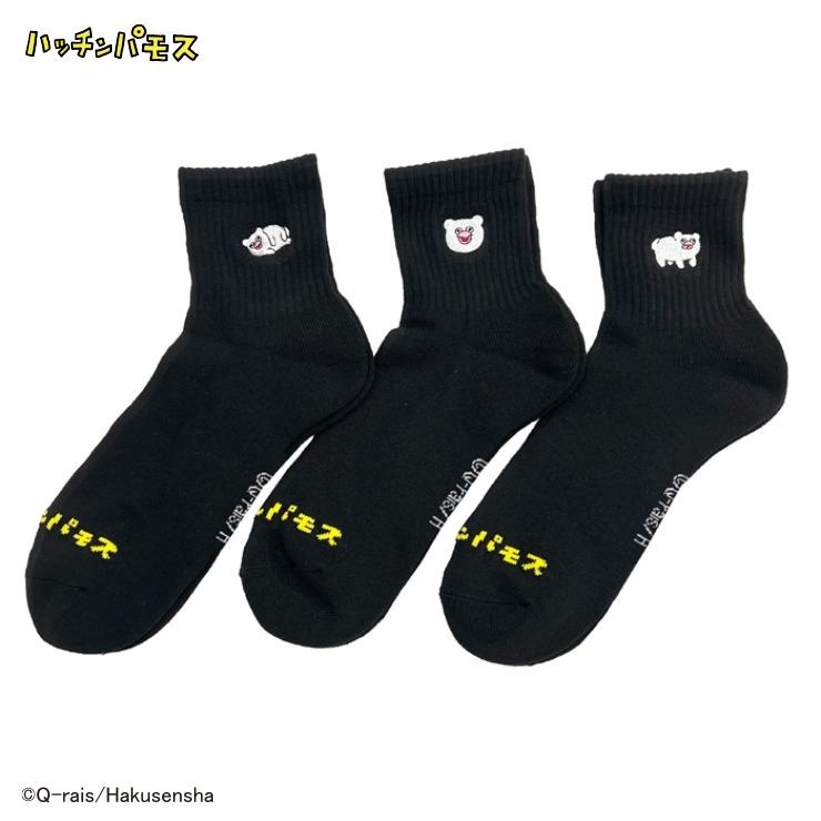 メンズ クォーター丈 底パイル編みソックス刺繍付 24-26cm(ハッチンパモス)