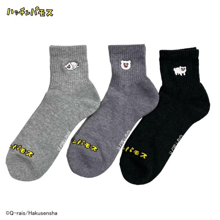 メンズ クォーター丈 底パイル編みソックス刺繍付 24-26cm(ハッチンパモス)