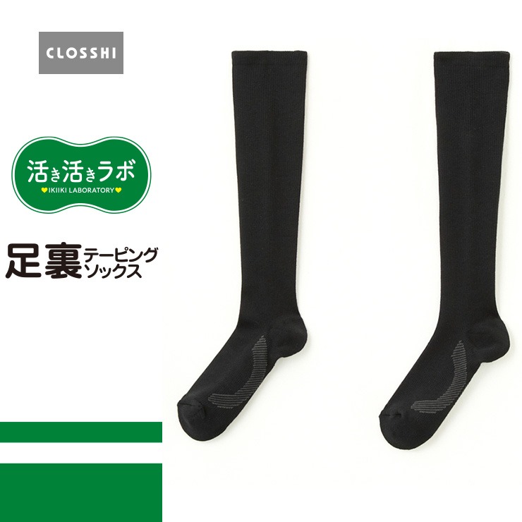 レディース 足裏テーピングハイソックス(活き活きラボ×整体師監修)38cm丈・つま先かかとパイル仕様