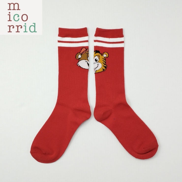 レトロテイストなクマとトラが後ろに入ったソックスです!